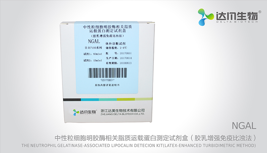 肾功能损伤早期的生物标志物。NGAL不仅仅存在于嗜中性粒细胞中,也会出现在特定的上皮细胞内,例如发生缺血性和毒性肾损伤过程中,肾小管上皮细胞中的NGAL将显著增加,在开始的两个小时内,尿液和血液中NGAL水平将显著增加,因此NGAL是早期急性肾损伤的敏感标志物。